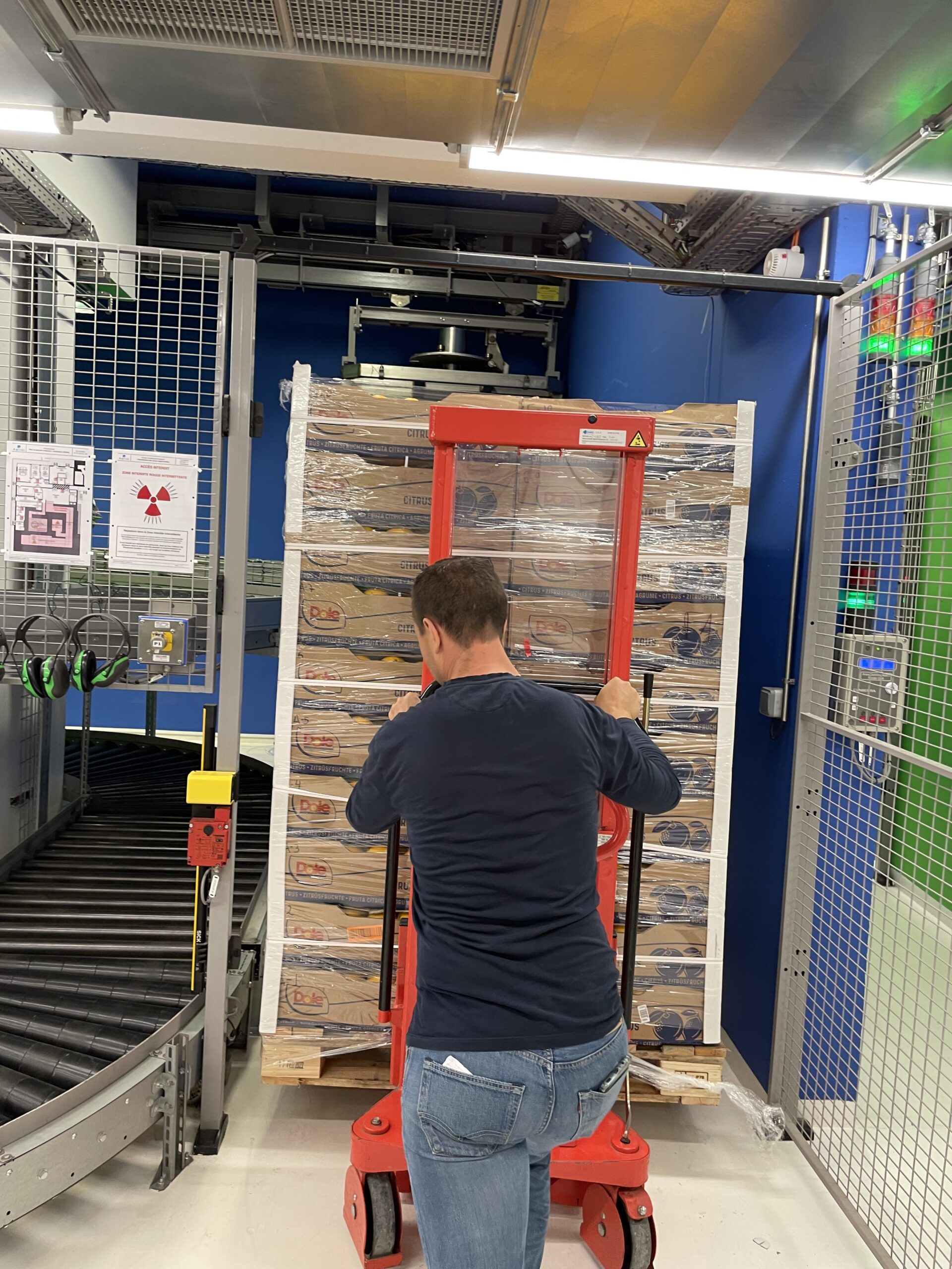 - Placement d’une palette sur le convoyeur rayons X © Aerial – crédit photo